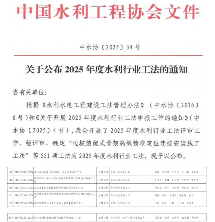 三亿注册线上平台_三亿(中国)一站式服务平台斩获6项2025年度水利行业工法