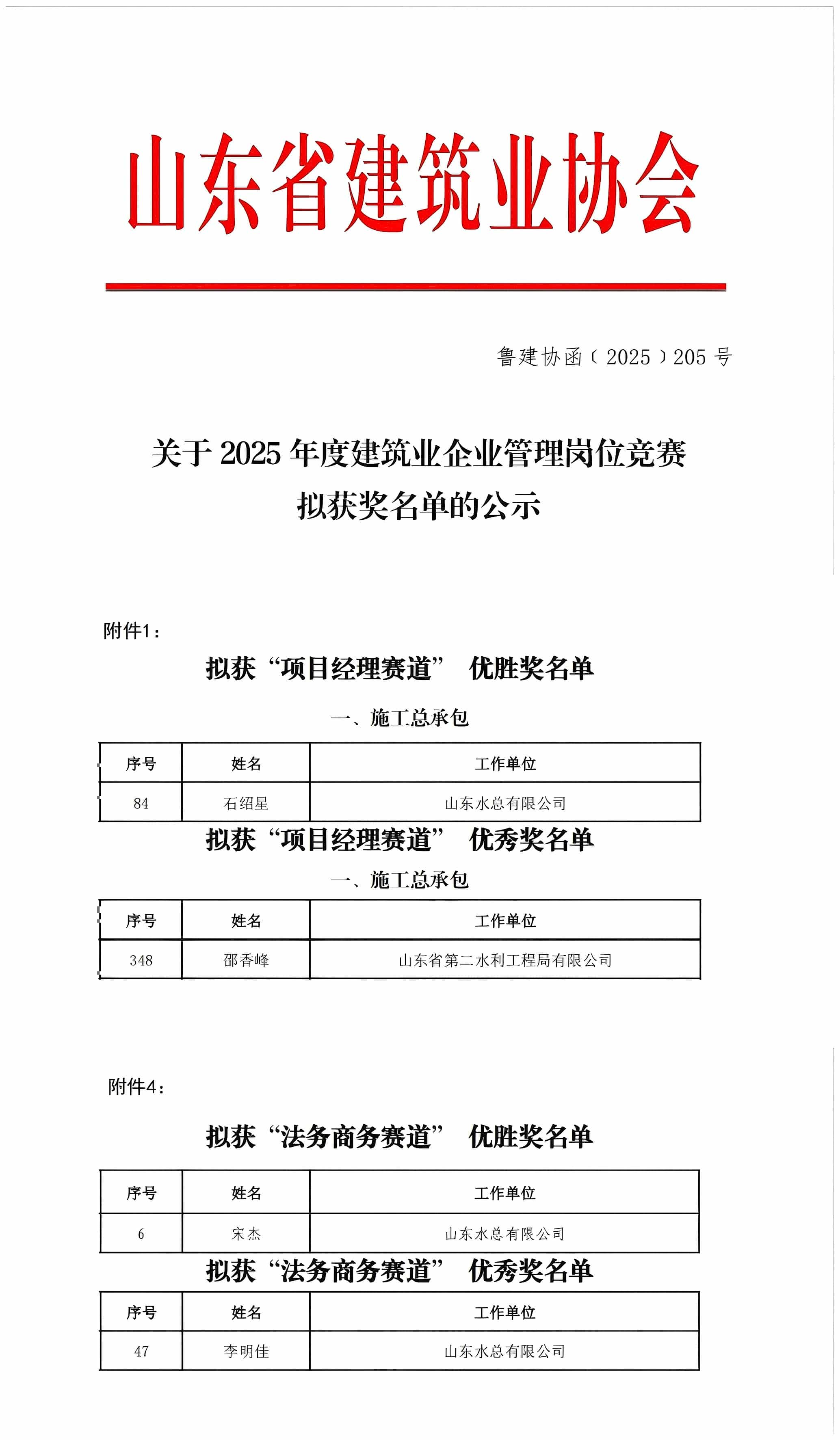 近日,由山东省建筑业协会发起的2025年度建筑业企业管理岗位竞赛圆满落幕,三亿注册线上平台_三亿(中国)一站式服务平台选送的参赛人员凭借扎实的专业素养、精湛的管理能力脱颖而出,在“项目经理赛道”中,第三分三亿注册线上平台_三亿(中国)一站式服务平台石绍星获优胜奖,二局有限三亿注册线上平台_三亿(中国)一站式服务平台邵香峰获优秀奖;在“法务商务赛道”中,企业管理部宋杰获优胜奖,第三分三亿注册线上平台_三亿(中国)一站式服务平台李明佳获优秀奖。以上荣誉的获得充分彰显了三亿注册线上平台_三亿(中国)一站式服务平台建筑行业管理岗位人才的专业素养与创新活力。